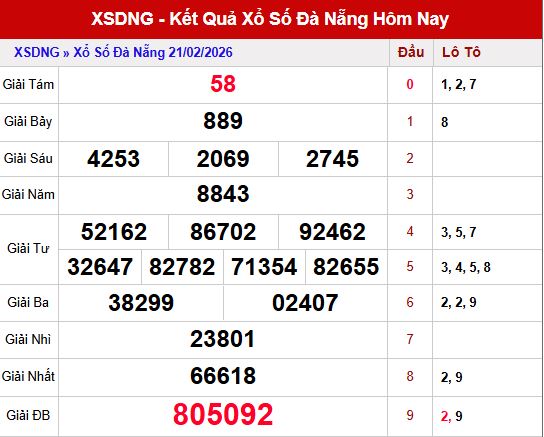 Các chuyên gia sxmb đánh giá nhanh kết quả xsdng ngày 21/2/2026